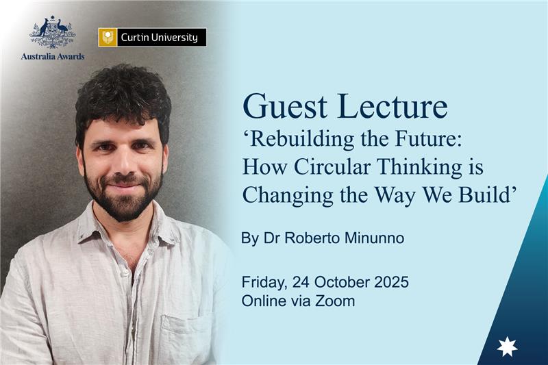 Join us for the online guest lecture, ‘Rebuilding the Future: How Circular Thinking is Changing the Way We Build’, delivered by Dr Roberto Minunno from Curtin University, on Friday, 24 October 2025, from 1:45 pm to 4:00 pm (Jakarta time).
