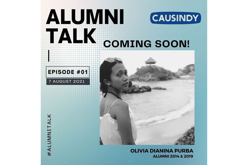 The first episode of Alumni Talk features Olivia Dianina Purba, a CAUSINDY alumna who actively works on environmental issues, and discuss her passion for environment, travelling experience, and her latest book about mental health.