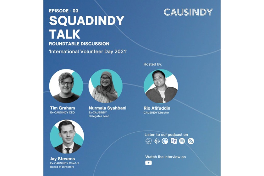 CAUSINDY is back with their third episode of SQUADINDY Talk: Roundtable Discussion, to commemorate the “International Volunteer Day” which featured Tim Graham (Ex-CAUSINDY CEO), Nurmala Syahbani (Ex-CAUSINDY Delegates Lead), Jay Stevens (Ex-CAUSINDY Chair of Board of Directors), and Rio Afifuddin (CAUSINDY Director) as host.