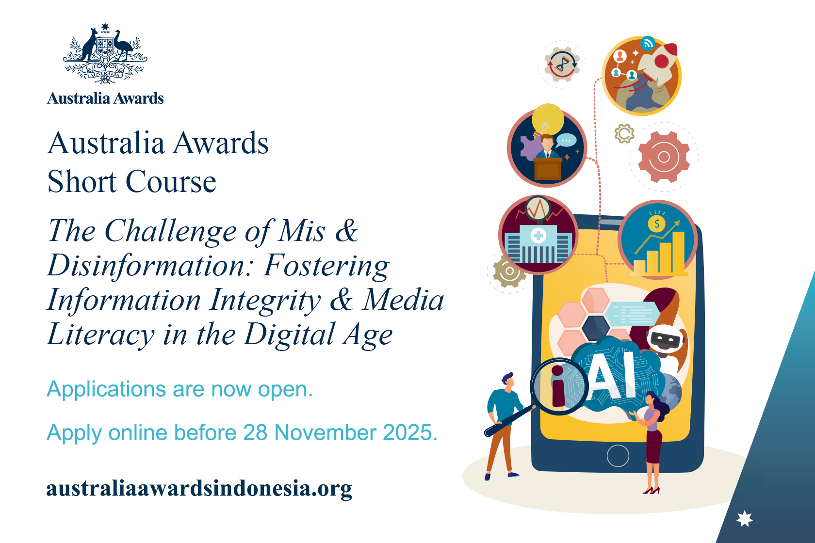 Daftarkan diri Anda sekarang untuk mengikuti Kursus Singkat Australia Awards tentang Tantangan Misinformasi dan Disinformasi: Membina Integritas Informasi dan Literasi Media di Era Digital