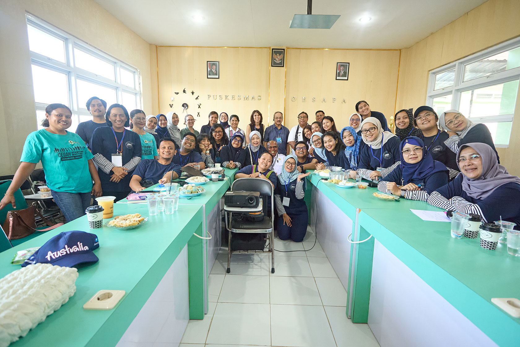 Wrapping up the visit with a group photo, participants and Puskesmas Oesapa team celebrate the exchange of knowledge and experiences.