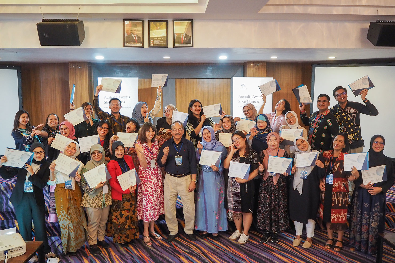 All participants proudly pose with their certificates, marking the start of their journey as members of the Australian Alumni community.