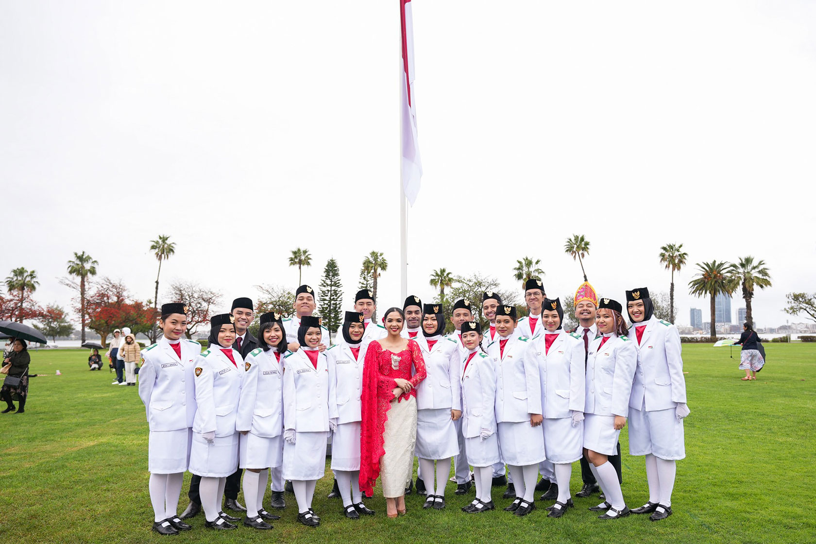 Bima becomes one of the flag-raising troops. (Credits: KJRI Perth)