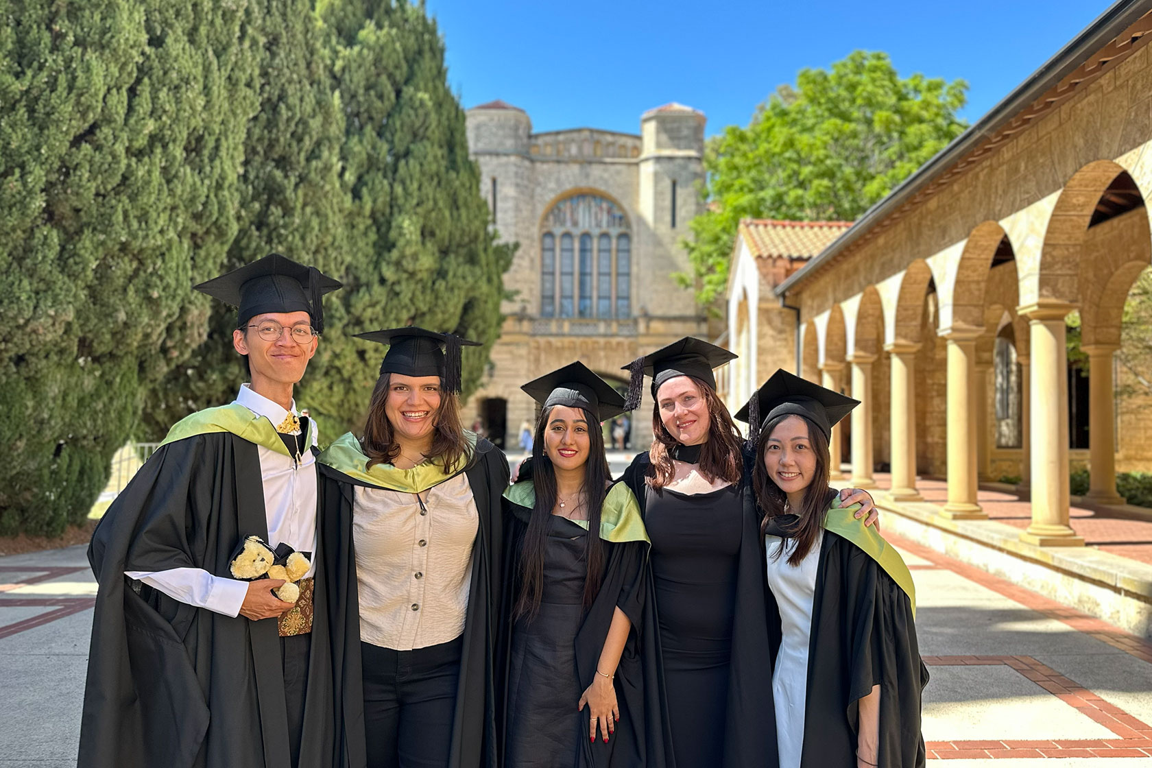 Bima and his colleagues, after attending their graduation ceremony at The University of Western Australia in 2024.